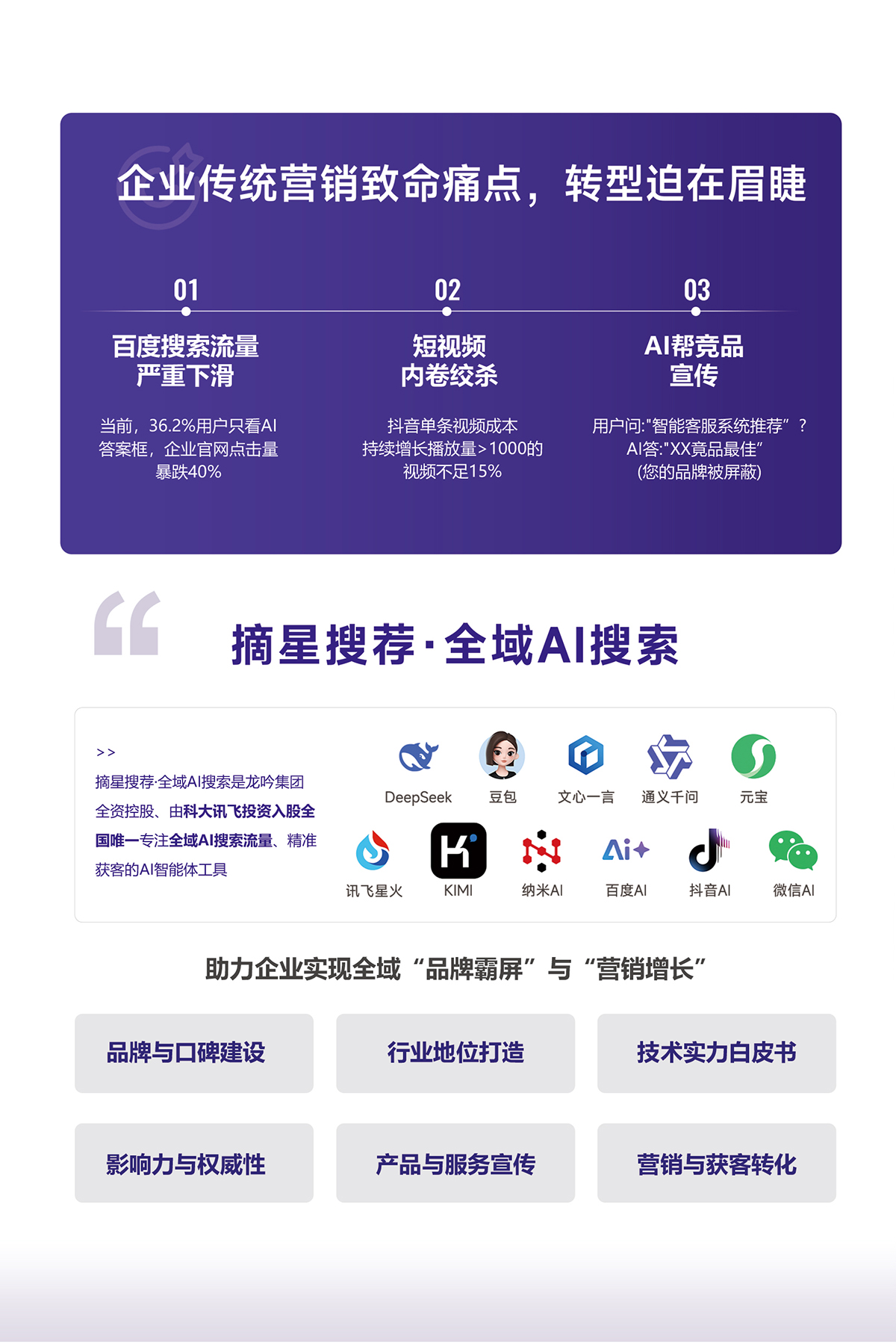 覆盖AI营销、网站建设、全网推广、电商运营、新媒体运营、出海服务,打造一站式闭环服务,降低企业转型成本